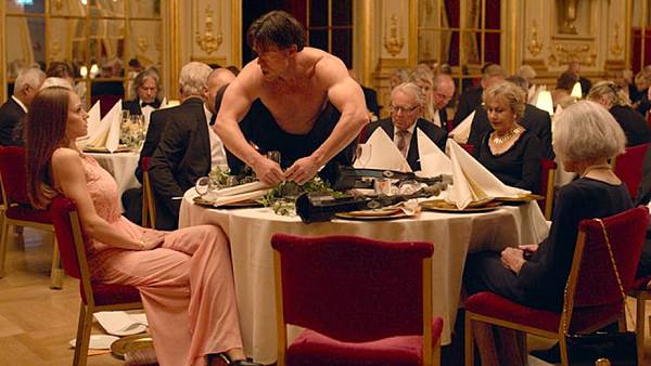 導演在片中製造了許多陷阱給觀眾,看似喜劇的橋段,但在笑點過後迎來則是坐立難安的焦慮,例如片中的行為宴會廳藝術表演,扮演猿人的男演員在大禮堂上失控的表演,卻也意外揭露觀看表演的風雅名士,正如同他們自以爲是的來欣賞藝術,卻也被藝術給反嘲了一番,導演很有力的抨擊一番總是高高在上的菁英。