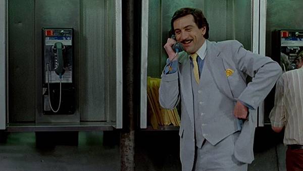 台灣觀眾很少可以見到這部電影,這時的勞勃狄尼洛已經在兩年前憑藉「蠻牛」獲得一座奧斯卡最佳男主角獎,迪尼洛在七零中期到八零年代是最具爆發的演員之一,非常類似李奧納多,不斷的在各種類型試圖證明自己的演藝才能,在喜劇之王中,他是個與外界溝通有些許障礙的人,但卻很自得在自己幻想的舞台上。馬丁在片中有諸多突破好萊塢敘事的手法,也很有力道的嘲諷傳媒。在尾聲,男主角因為求助無門,只能綁架自己的偶像,來要脅電視台轉播他的處女秀,最後結局竟是獲得觀眾的滿堂喝采。是真實或是幻想,難以判斷。
